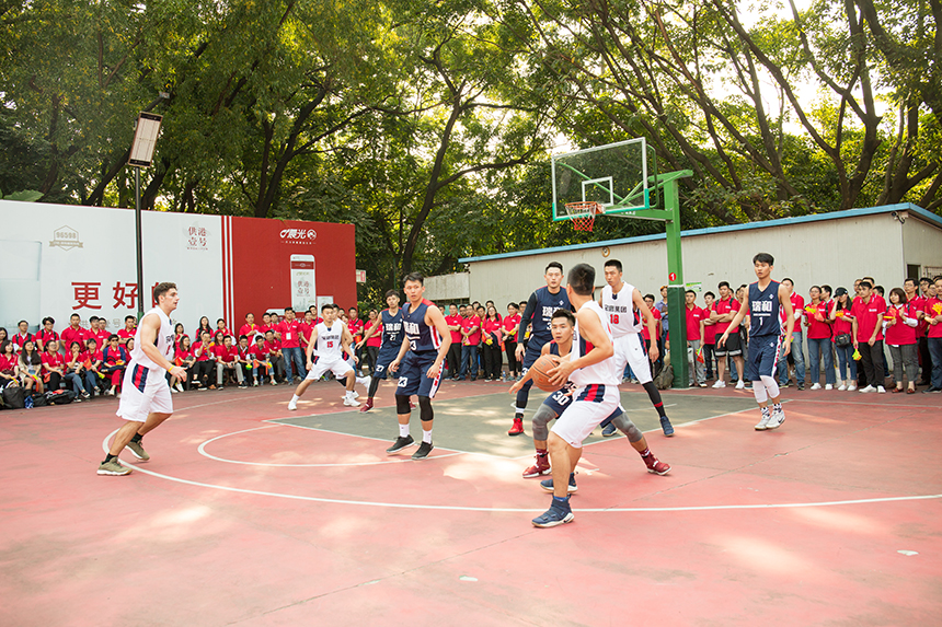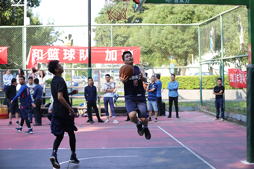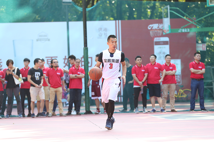 ▲9月23日小組循環(huán)賽中,寶鷹集團(tuán)以絕對(duì)優(yōu)勢(shì)領(lǐng)先新藝華建筑、華加日幕墻籃球隊(duì),提前出線晉級(jí)本次籃球賽十六強(qiáng)。