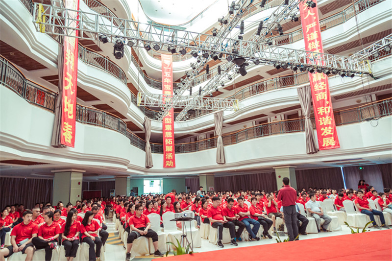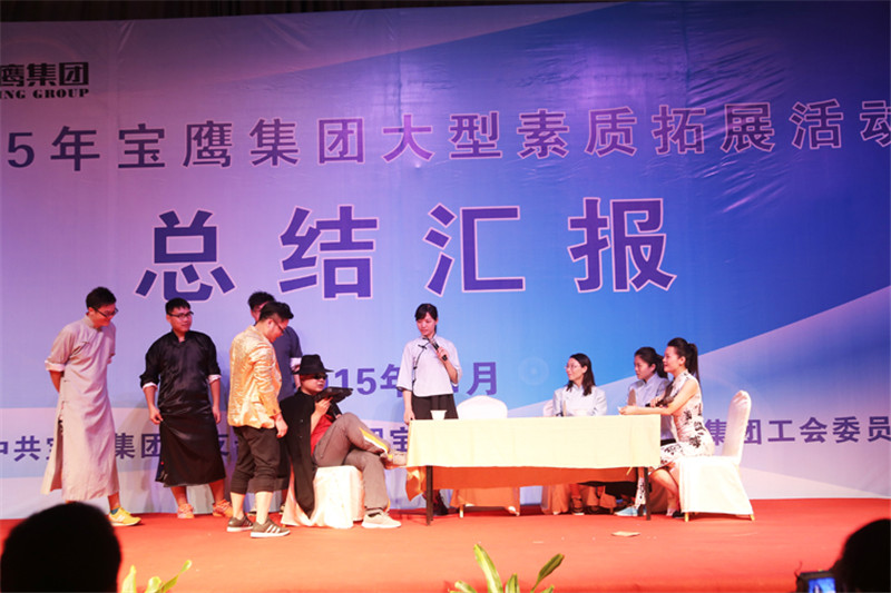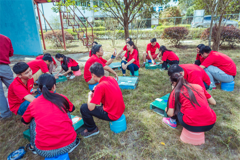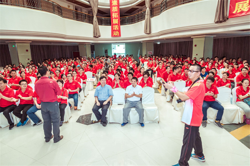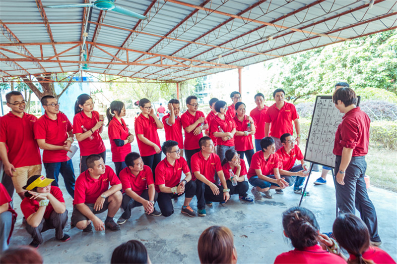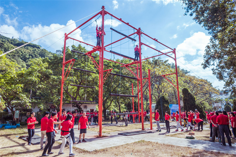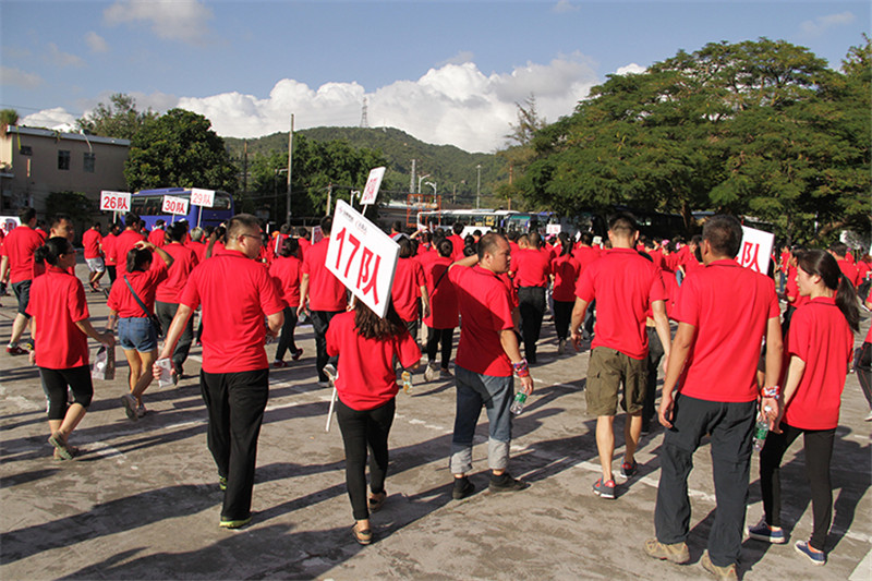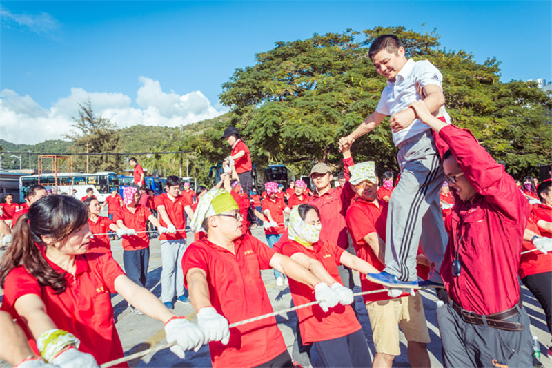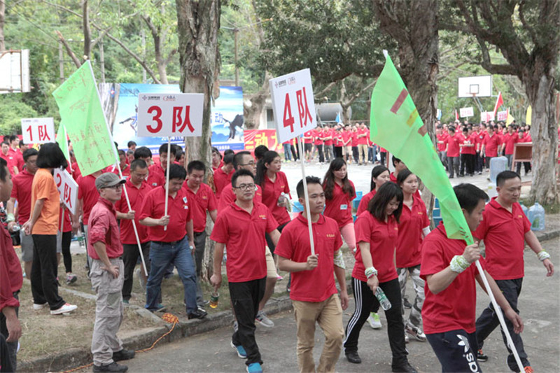 7日一大早,參加拓展活動的員工即分乘10輛大巴,滿懷期待地奔赴此次拓展活動的開展基地——深圳溪涌工人度假村。到基地車甫一停穩(wěn),教官的哨聲便催促著眾人馬上列成整齊的隊伍,一隊一隊地行進至主訓練場,聆聽寶鷹集團董事長古少波在拓展訓練正式開始前的講話。