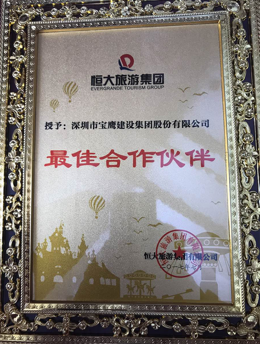 表彰會上,恒大旅游集團充分肯定了各施工單位對海花島項目的大力支持以及兩年來?;◢u項目取得的施工進展與成果。寶鷹集團榮獲恒大旅游集團戰(zhàn)略合作伙伴“最佳合作伙伴”稱號。