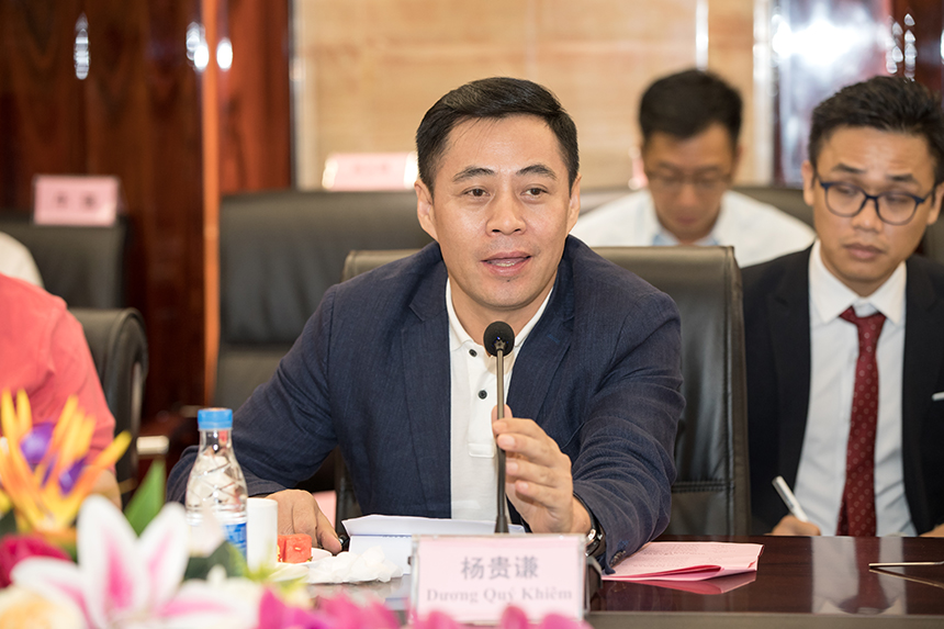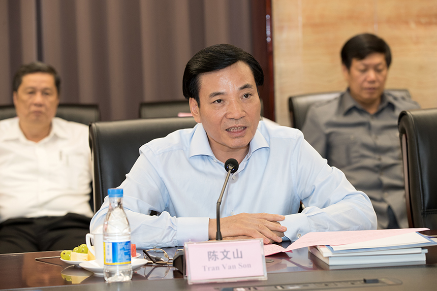 ▲越共中央委員、奠邊省委書記陳文山表示建議寶鷹集團(tuán)在新城市建設(shè)等方面在越南進(jìn)行投資
