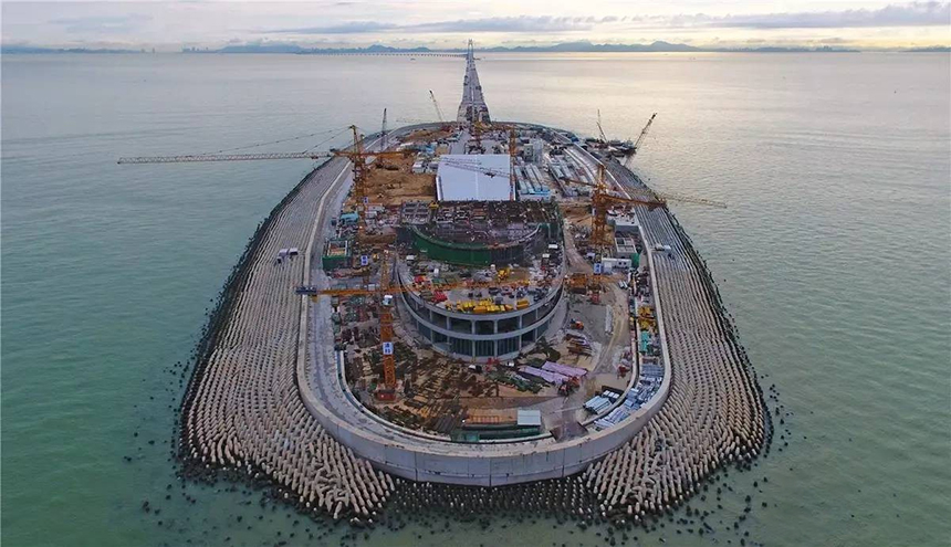港珠澳大橋是國家重點工程,也是中國標志性建筑工程,連接香港、珠海、澳門的超大型跨海通道,全長55公里,歷經(jīng)7年奮戰(zhàn),現(xiàn)已進入收尾階段。人工島主體建筑是大橋外觀品質工程,將建成國內最大標準最高的清水結構建筑群,成為港珠澳大灣區(qū)的標志性建筑。