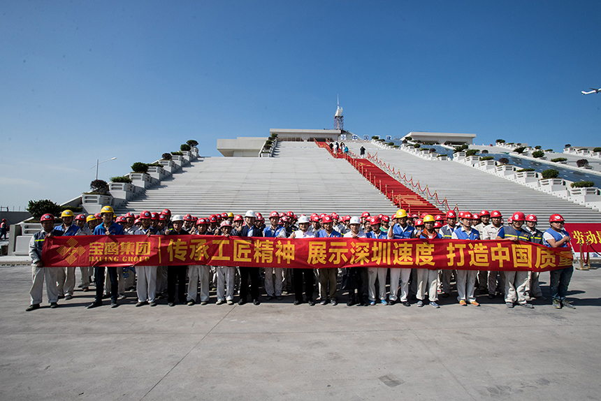 在隨后召開的誓師大會上,寶鷹集團總裁古樸為項目部人員加油打氣,鼓勵項目部人員協(xié)同作戰(zhàn),攻堅克難。他表示,寶鷹集團自承接項目工程以來,面臨時間緊,任務重等多重問題。百人攻堅克難,背水一戰(zhàn)。在環(huán)境極端惡劣的情況下,寶鷹人不畏艱難,積極應對各種挑戰(zhàn),做好了各項防控防風險措施。一切致力于做到精益求精,嚴格管控,杜絕絲毫誤差。寶鷹人要向世界展示企業(yè)實力和品質高度,全力以赴投入此項目,發(fā)揮以“智、敏、勇”為核心的企業(yè)文化精神,傳承工匠精神,展示深圳速度,打造中國質量!