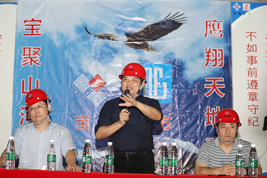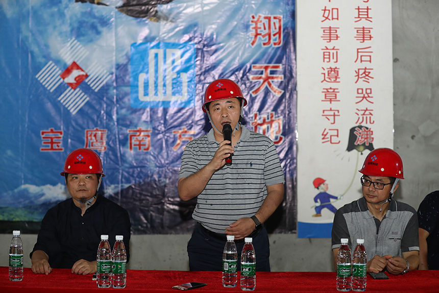 寶鷹集團(tuán)副總裁古樸向全體項(xiàng)目員工發(fā)起號召,希冀大家團(tuán)結(jié)一心、并肩作戰(zhàn)、攻堅(jiān)克難,努力把星藝文創(chuàng)天地項(xiàng)目打造成集團(tuán)2018年踐行深圳速度和質(zhì)量的標(biāo)志項(xiàng)目、觀摩項(xiàng)目。全面發(fā)揮以“智、敏、勇”為核心的企業(yè)文化精神,傳承寶鷹工匠精神。嚴(yán)格落實(shí)安全生產(chǎn)責(zé)任制,人人都需要擔(dān)負(fù)起重要的監(jiān)督、示范責(zé)任。項(xiàng)目管理人員要對安全防范、隱患整改、督導(dǎo)檢查部署到位,以過嚴(yán)過硬的舉措確保萬無一失。三百六十行,行行出狀元,每個工種都是整體不可分割一部分,希望全體同事團(tuán)結(jié)一心,協(xié)同作戰(zhàn),以決戰(zhàn)決勝的斗志全力打好百日攻堅(jiān)戰(zhàn)!