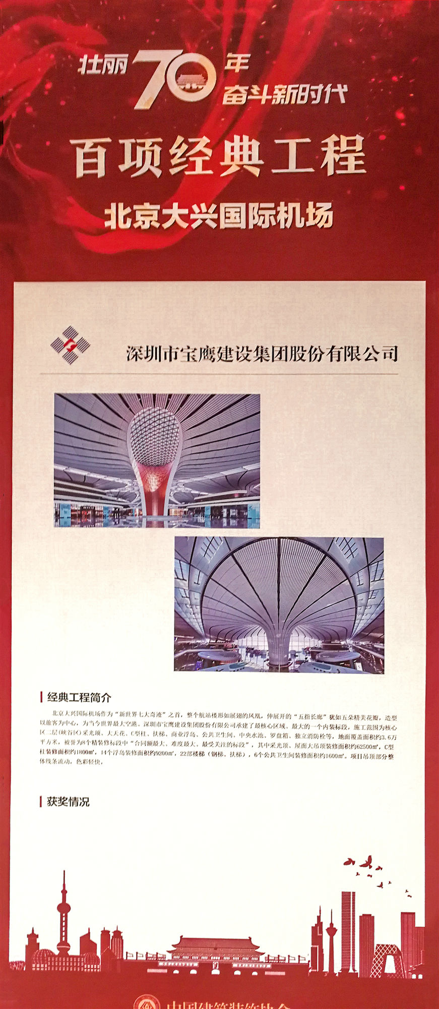 ▲寶鷹集團(tuán)承建的北京大興國(guó)際機(jī)場(chǎng)被評(píng)為“大國(guó)裝飾70年——百項(xiàng)經(jīng)典工程”