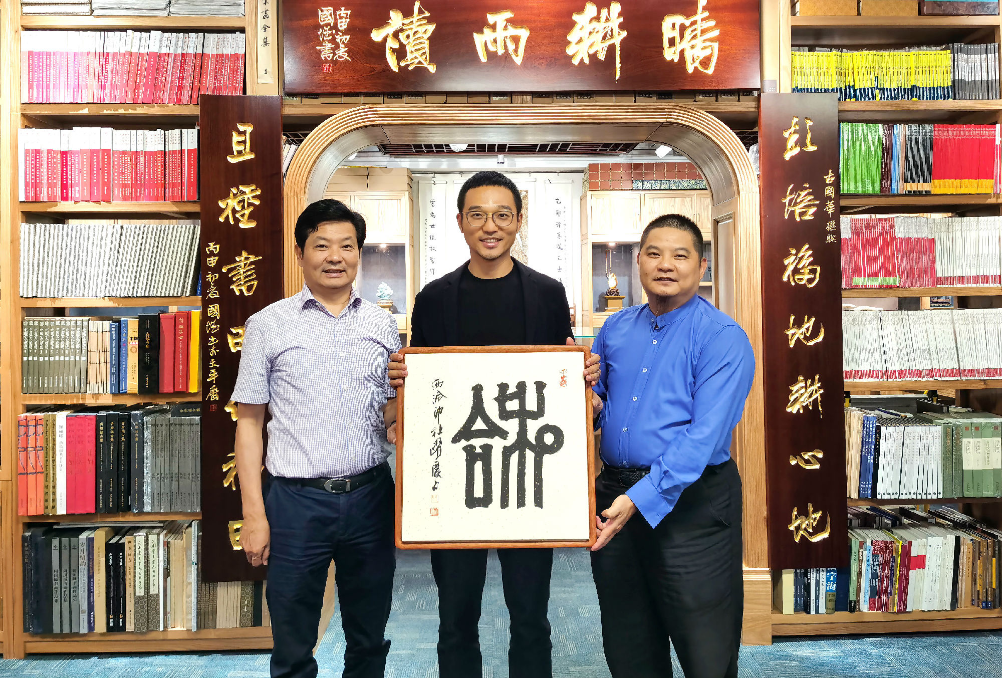 ▲寶鷹集團(tuán)贈與陽光城集團(tuán)深圳區(qū)域總裁吳樂寶鷹美術(shù)館館長王躍慶書法作品“和合”