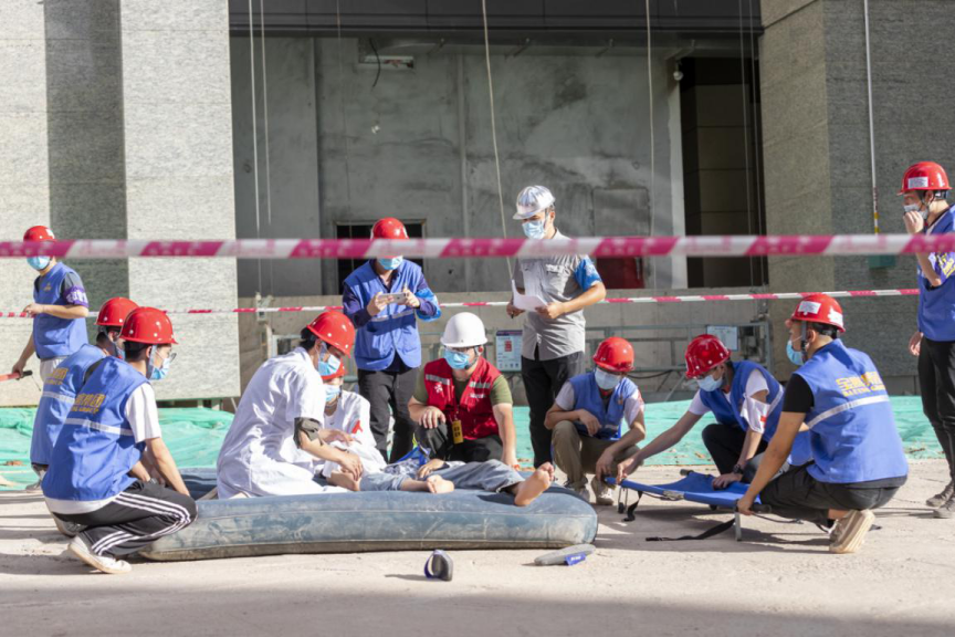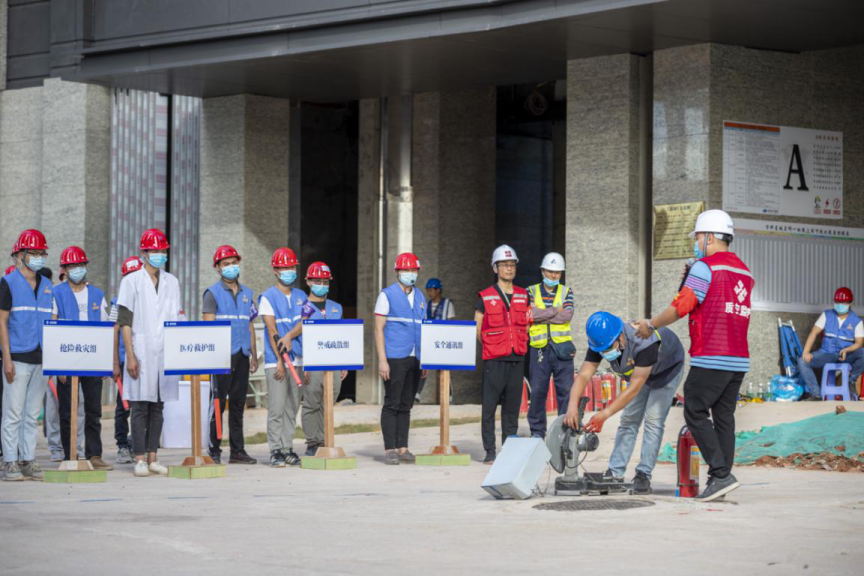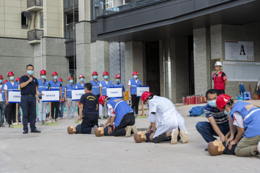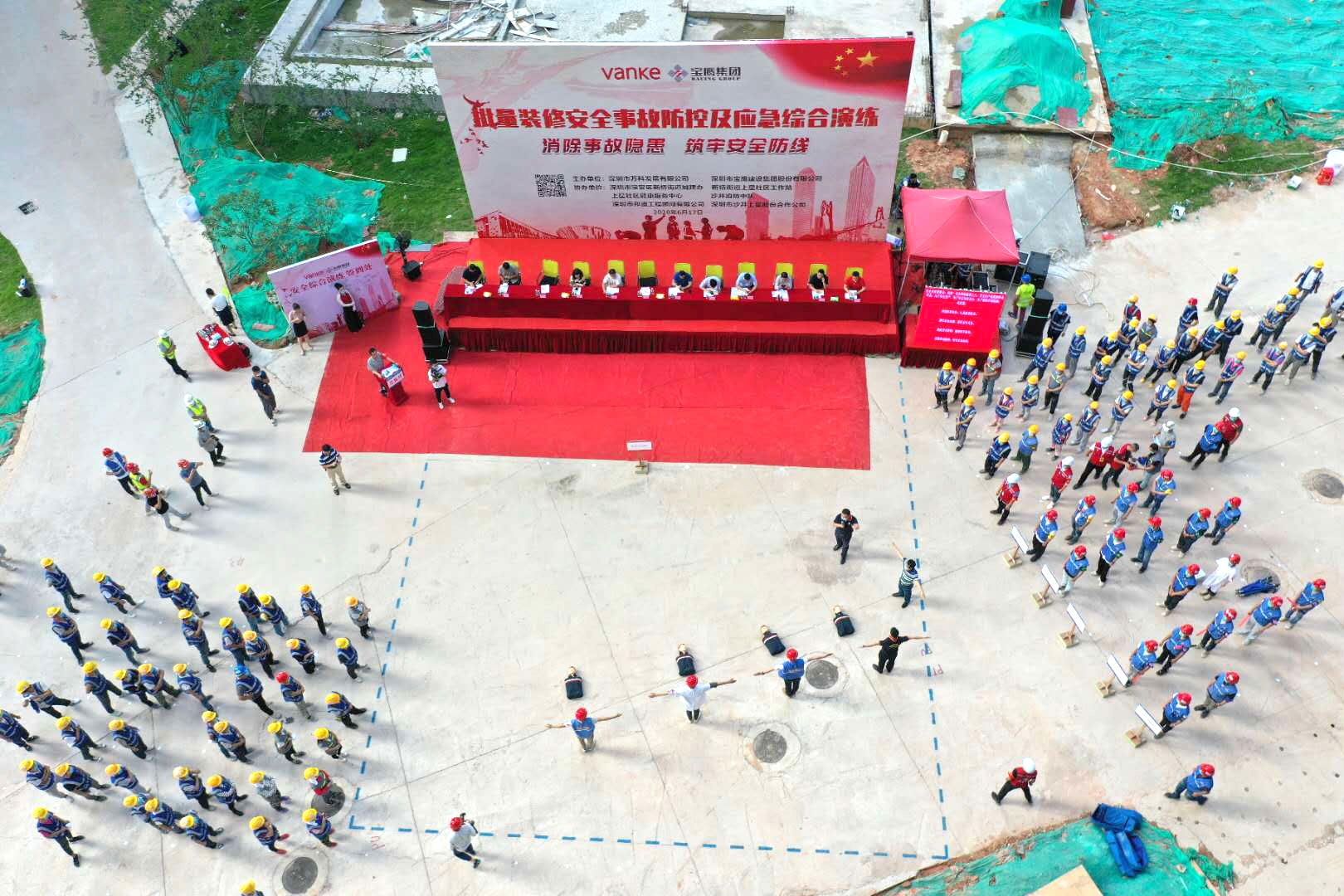 深圳萬科寶光龍片區(qū)總經(jīng)理趙偲翼,深圳萬科工程管理中心向霆軒,深圳萬科工程經(jīng)理黃書韻,寶安區(qū)新橋街道上星社區(qū)工作站副書記任國柱,深圳市沙井上星股份合作公司董事曾艷好、曾銳鋒,上星社區(qū)服務(wù)健康中心主任張運(yùn)謀,深圳市邦迪工程顧問有限公司監(jiān)理總監(jiān)湛曉旭等200余人共同參與應(yīng)急綜合演練。