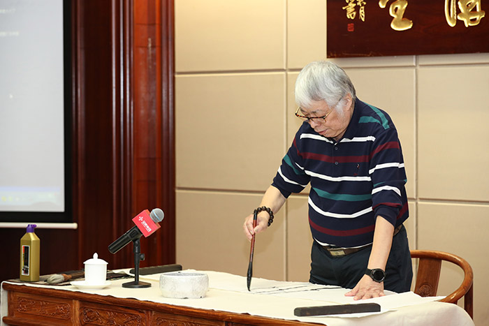 在與聽眾互動中,周國城現(xiàn)場潑墨教學(xué)、深情演示,指出興趣是最好的老師,堅(jiān)持是勝利的法寶,告誡大家學(xué)習(xí)一定要建立在興趣的基礎(chǔ)上,通過持之以恒、長年累月的練習(xí),從量變到質(zhì)變,方可取得某個領(lǐng)域的成績。