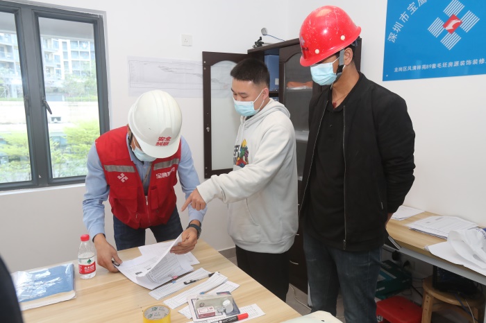 3月25日,寶鷹集團總裁于泳波帶隊檢查深圳龍崗區(qū)風清林苑、大族云峰人才住房項目,檢查項目復(fù)工復(fù)產(chǎn)、疫情防控、安全生產(chǎn)等工作,推進項目建設(shè)穩(wěn)步進行。集團總工程師王建國、董事長助理兼總裁辦主任梁淞、總裁助理兼工程管理中心總經(jīng)理許雪峰及相關(guān)部門負責人一同檢查。