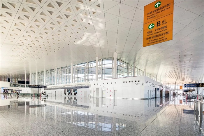 寶鷹集團承建的杭州蕭山國際機場三期項目新建航站樓及陸側交通中心工程旅客航站樓及北三指廊工程精裝五標段,總建筑面積達8.5萬平方米,含航站樓北一指廊及北長廊東段1至4層全部裝修作業(yè),功能涉及國內(nèi)混流、國際到達、國內(nèi)出發(fā)和國際出發(fā)。