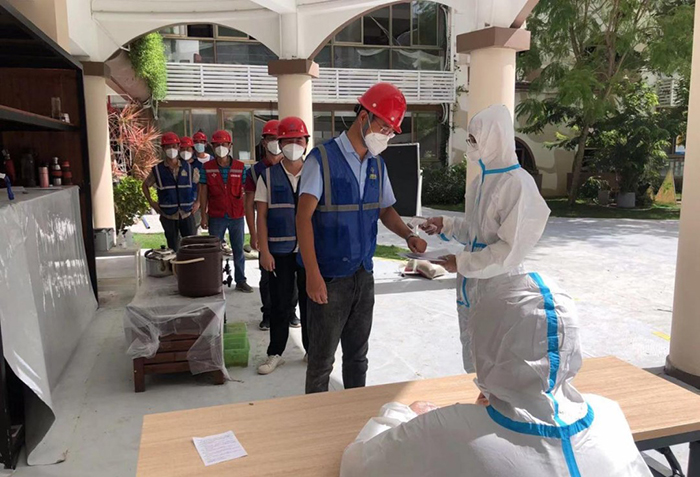 在如火如荼的項(xiàng)目建設(shè)過程中,寶鷹團(tuán)隊始終牢記“安全第一 生命至上”的原則,一手抓防疫,一手抓安全。嚴(yán)格貫徹落實(shí)廣東省、深圳市應(yīng)對新冠疫情的工作要求以及區(qū)工務(wù)署的相關(guān)部署,實(shí)行“強(qiáng)制教育、強(qiáng)制管理、強(qiáng)制防控、強(qiáng)制消毒”的防控措施。對工人實(shí)行集中住、日消毒、備口罩、包三餐的兩點(diǎn)一線封閉式管理,杜絕無關(guān)人員進(jìn)入現(xiàn)場,阻截潛在傳染源。加強(qiáng)重點(diǎn)風(fēng)險源管控和隱患排查整治,尤其是高處作業(yè)、臨時用電、消防安全等重點(diǎn)風(fēng)險隱患,執(zhí)行安全員“凡是有人作業(yè),必須在場監(jiān)管”的規(guī)章制度,確保項(xiàng)目安全生產(chǎn)。