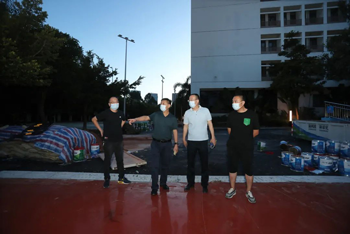 為保證九月份如期開學(xué),給在校孩子們一個煥然一新的“夢幻城堡”。寶鷹集團(tuán)利用僅有的40天時間,克服場地狹小、高溫酷暑、臺風(fēng)侵襲、環(huán)保需求等眾多困難,由集團(tuán)總裁于泳波擔(dān)任總指揮,配置相關(guān)管理人員,完善專業(yè)施工團(tuán)隊,定期召開生產(chǎn)會議,及時指導(dǎo)項(xiàng)目開展工作。同時,各項(xiàng)目實(shí)施三班作業(yè),24小時不間斷施工,白天迎戰(zhàn)酷暑,夜里挑燈再戰(zhàn),加班加點(diǎn)搶抓進(jìn)度。集中人力、物力、財力、精力,按照“超常規(guī)、合程序、敢擔(dān)當(dāng)”的原則,錨定建設(shè)目標(biāo),全力推進(jìn)項(xiàng)目的全面建設(shè)。