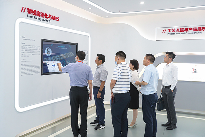 在捷佳偉創(chuàng)董事長余仲、財務(wù)總監(jiān)金晶磊的陪同下,古少明、張東輝先后參觀了捷佳偉創(chuàng)的企業(yè)展廳與太陽能電池設(shè)備研發(fā)生產(chǎn)車間,了解捷佳偉創(chuàng)的企業(yè)發(fā)展戰(zhàn)略、產(chǎn)業(yè)布局、市場客戶、技術(shù)研發(fā)等情況,近距離感受了解受捷佳偉創(chuàng)的主要生產(chǎn)設(shè)備、工藝流程、專利技術(shù)等。