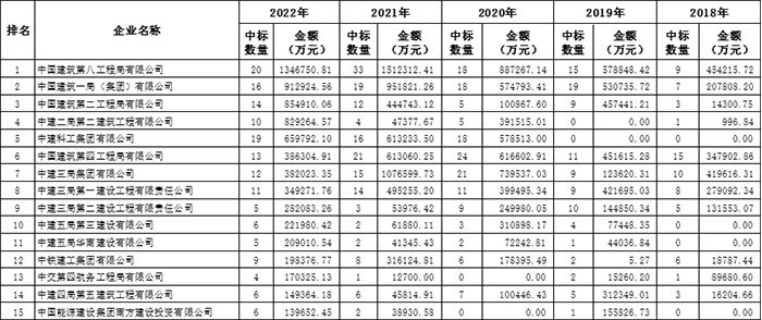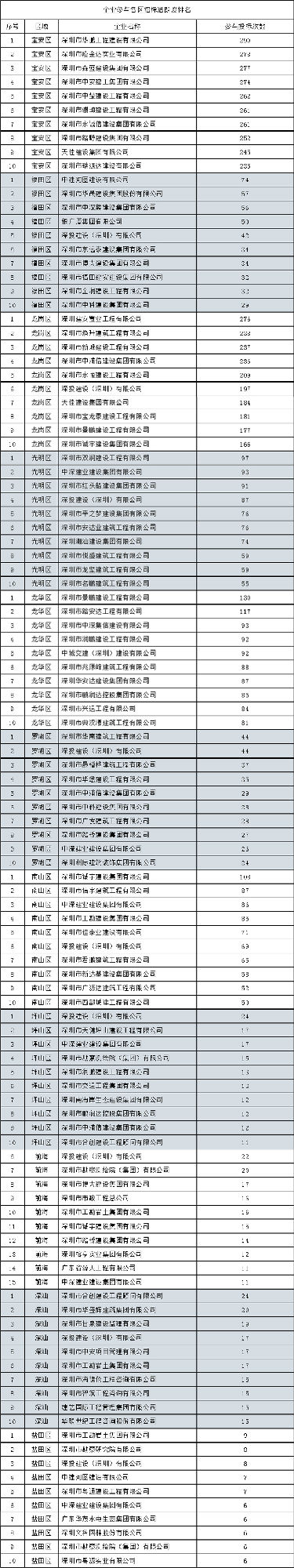 2021-2022年深圳市建筑企業(yè)“市政公用工程施工總承包一級和建筑工程施工總承包一級”企業(yè)在深中標(biāo)數(shù)量排名前40名單位如下: