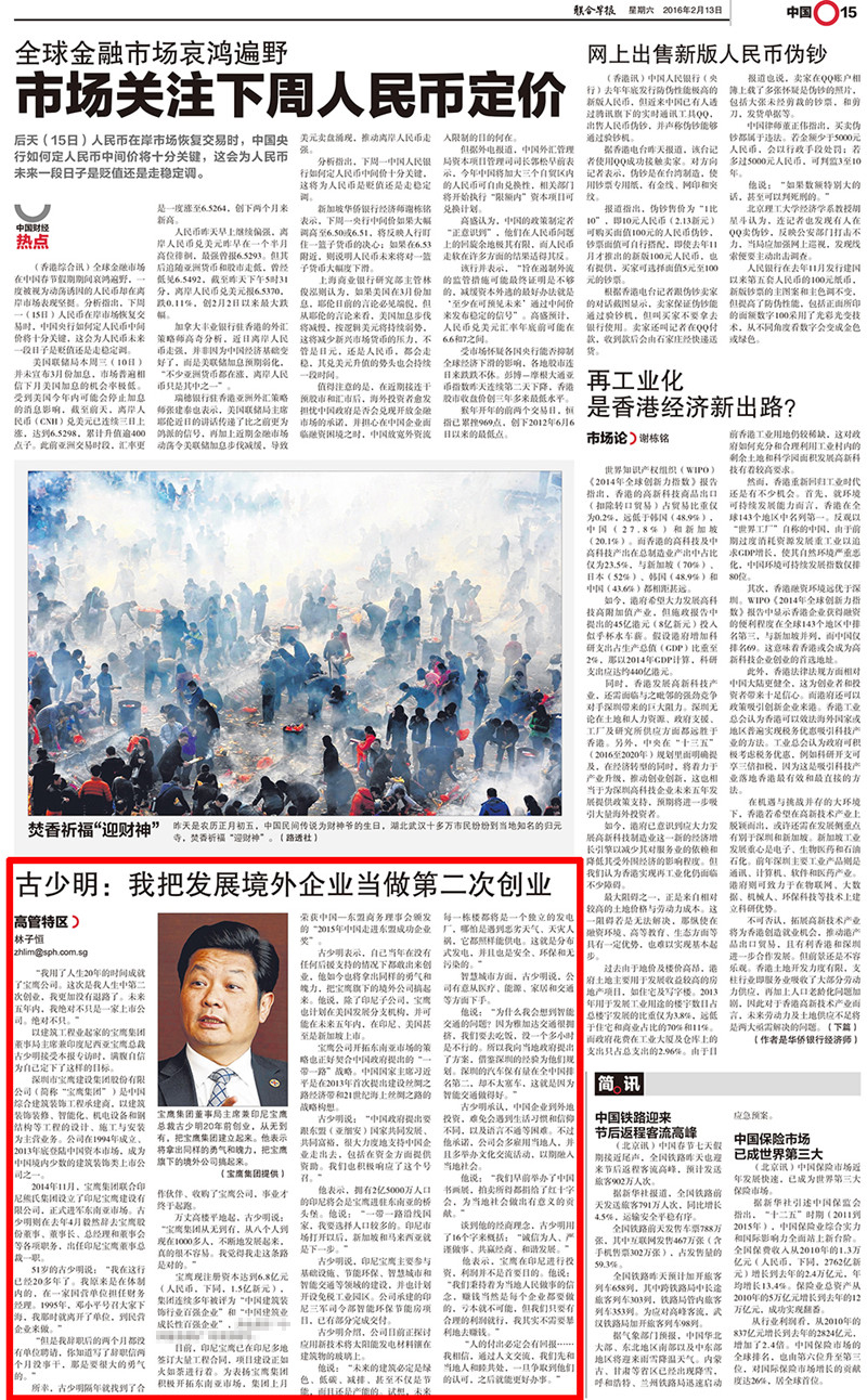近日,新加坡《聯(lián)合早報(bào)》專題刊發(fā)了對(duì)寶鷹集團(tuán)董事局主席兼印尼寶鷹總裁古少明的專訪。在采訪中他表示,將拿出20年前從無到有建立寶鷹集團(tuán)的勇氣和魄力,把寶鷹旗下的境外公司搞起來。