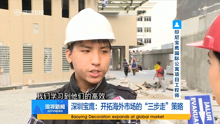 7月5日晚,深圳衛(wèi)視《深視新聞》播出《深圳寶鷹:開拓海外市場的“三步走”戰(zhàn)略》,以印尼寶鷹建設集團成立以來的成長壯大為樣本,全面反映寶鷹集團海外戰(zhàn)略落地情況及發(fā)展經(jīng)驗。深圳衛(wèi)視新聞中心采訪組記者赴印尼寶鷹建設集團及印尼寶鷹承建項目實地采訪拍攝,相繼采訪了印尼寶鷹建設集團合作伙伴、集團工作人員及高管。
