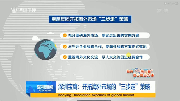 新聞報道中總結(jié)解密:寶鷹集團制定了開拓海外市場的“三步走”戰(zhàn)略。一、充分調(diào)研海外市場,制定走出去的實施方案,二、與當?shù)仄髽I(yè)戰(zhàn)略合作,使海外戰(zhàn)略方案正式落地。三、重視海外文化交流,以人文交流促進經(jīng)貿(mào)合作。