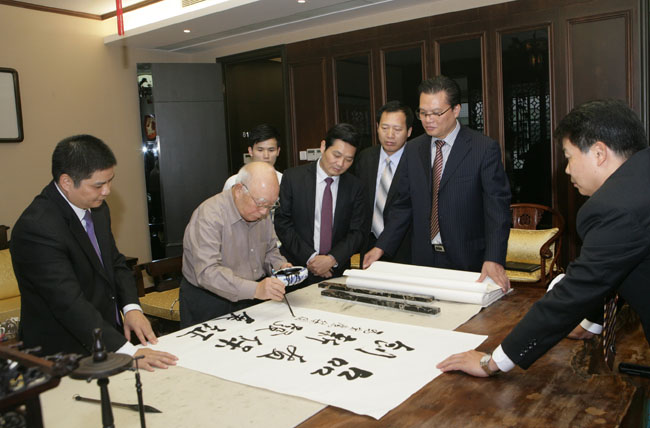 座談會結(jié)束后,會長們還欣然揮毫為我集團題詞并親切地和公司領(lǐng)導(dǎo)合影留念。