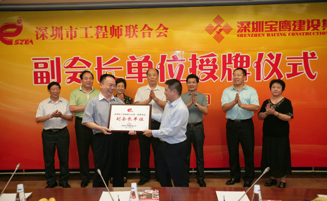 據(jù)悉,為給深圳建筑行業(yè)做出表率,打造深圳市建筑裝飾裝修龍頭企業(yè),深圳市工程師聯(lián)合會決定授予寶鷹集團副會長單位。2013年9月2日下午,副會長單位授牌儀式在寶鷹集團舉行,原深圳市委書記、深圳市工程師聯(lián)合會榮譽會長厲有為,深圳市第四屆人大常委會副主任邱玫、深圳市工程師聯(lián)合會會長段忠等領(lǐng)導(dǎo)以及寶鷹集團董事局主席古少明、董事常務(wù)副總裁許平、副總裁古樸等參加了儀式。