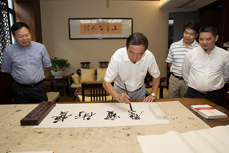 講座開始前,王能憲博士在寶鷹集團董事長古少波、總裁成湘文、副總裁古樸等領(lǐng)導(dǎo)的陪同下參觀了集團總部辦公樓,對寶鷹集團穩(wěn)健的發(fā)展步伐和濃厚的文化氣息印象頗深。
