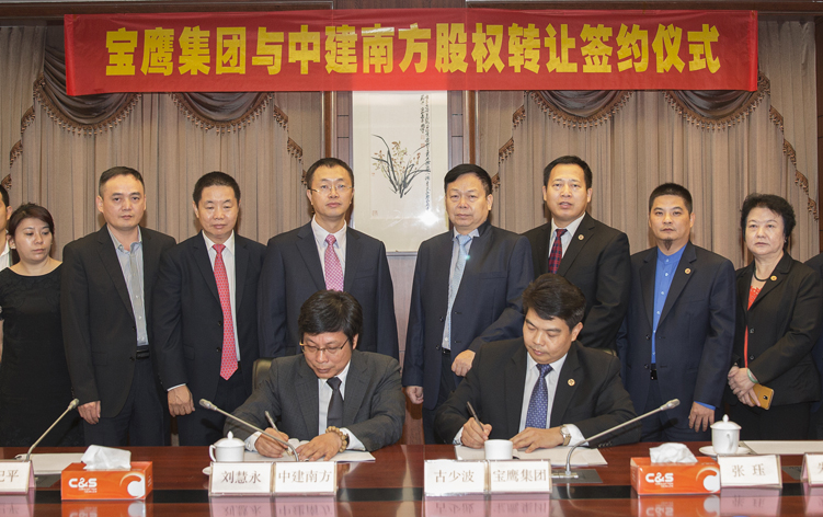 2014年9月28日,深圳市寶鷹建設(shè)集團股份有限公司(下稱“寶鷹集團”)與深圳市中建南方裝飾工程有限公司(下稱“中建南方”)股權(quán)轉(zhuǎn)讓簽約儀式在寶鷹集團總部隆重舉行。