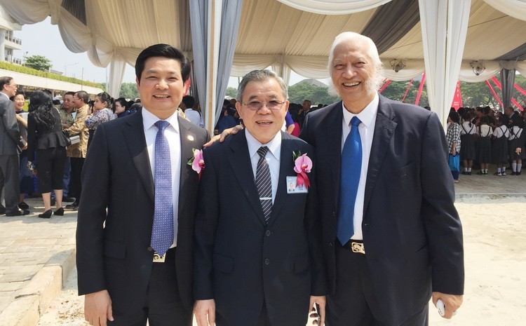 印尼寶鷹合作伙伴PULAUINTAN董事長貝錦興(中)與熊德龍董事長和古少明主席一起出席奠基儀式
