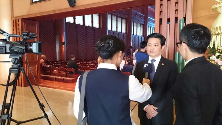 奠基儀式結(jié)束后,古少明主席接受當?shù)孛襟w采訪