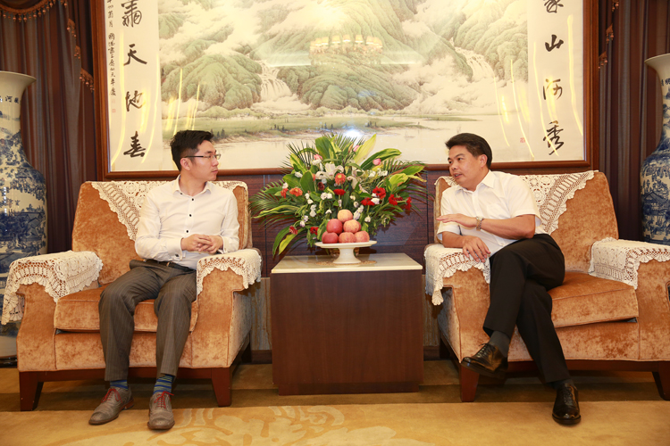 古少波董事長與鄭峻峰在會客廳交談