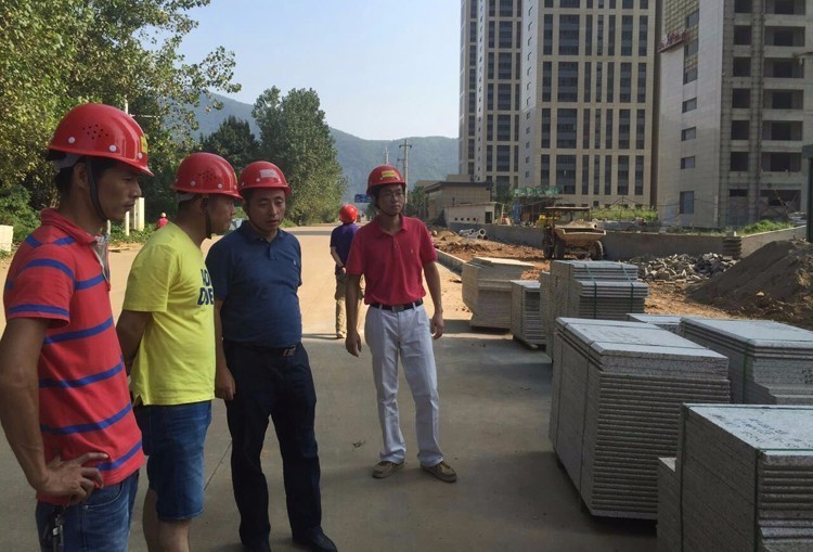 在黃石佳木公園198二期外裝項(xiàng)目部,王建國(guó)總工程師仔細(xì)查看了項(xiàng)目所用石材后,在現(xiàn)場(chǎng)立即向項(xiàng)目部相關(guān)人員強(qiáng)調(diào)了石材使用應(yīng)特別注意的事項(xiàng),要求項(xiàng)目部人員在施工過(guò)程中要注意新工法的應(yīng)用,以達(dá)到石材運(yùn)用的美觀大方。