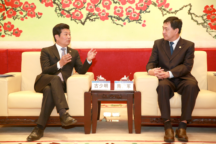 ▲古少明主席與隋廣軍書記在座談會(huì)上暢談校企合作前景