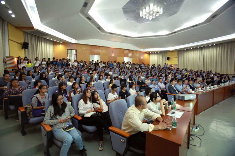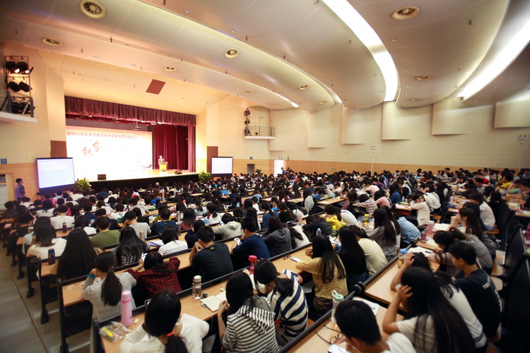 講堂現(xiàn)場(chǎng)學(xué)生“人滿為患”