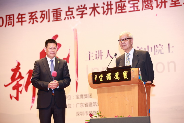 4日下午,寶鷹講堂第十講在廣東外語(yǔ)外貿(mào)大學(xué)舉辦,主講人為世界橋梁大師鄧文中院士,廣東外語(yǔ)外貿(mào)大學(xué)校長(zhǎng)仲偉合主持講堂,廣東省建筑業(yè)協(xié)會(huì)會(huì)長(zhǎng)梁劍明致辭,寶鷹講堂創(chuàng)始人、寶鷹集團(tuán)董事副總裁古樸以簡(jiǎn)短精彩發(fā)言開啟講堂,鄧文中院士帶來了以《創(chuàng)新》為題的精彩講座。鄧文中院士以“533”的巧妙結(jié)構(gòu)向與會(huì)嘉賓和廣外學(xué)子講述了創(chuàng)新的方方面面,令人耳目一新。