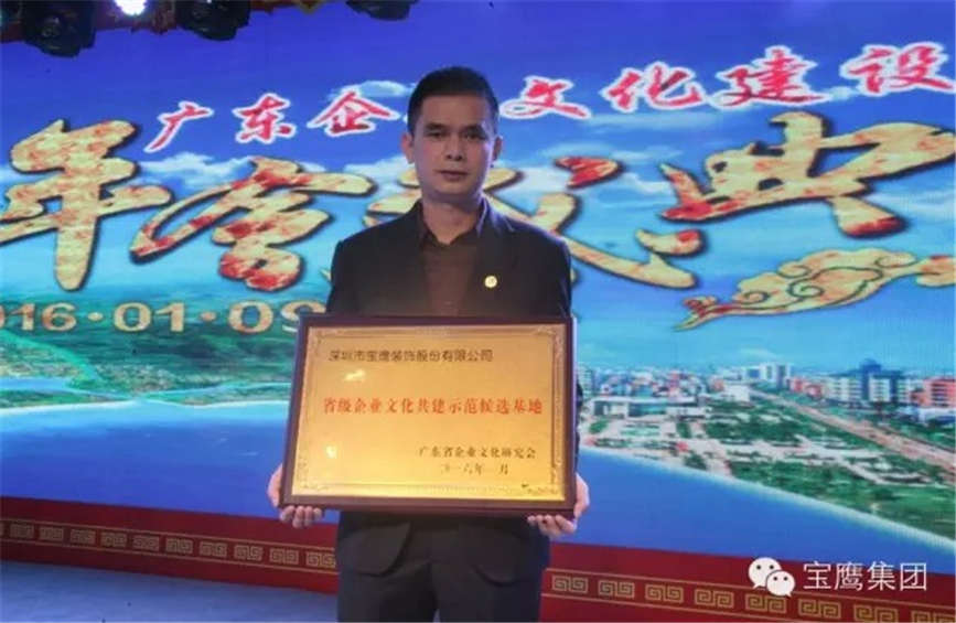 ▲寶鷹集團(tuán)獲得廣東省企業(yè)文化示范基地榮譽(yù)稱號(hào)