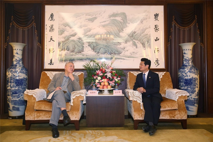 趙國屏院士在聆聽中時而認(rèn)真地做著筆記,時而針對具體問題向古少明主席發(fā)問,古少明主席一一認(rèn)真回答。