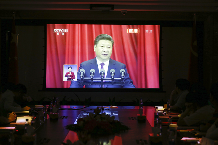重溫莊嚴的入黨誓詞禮畢后,上午十點,全體黨員通過網絡實時觀看了中央電視臺直播的建黨95周年慶祝大會。