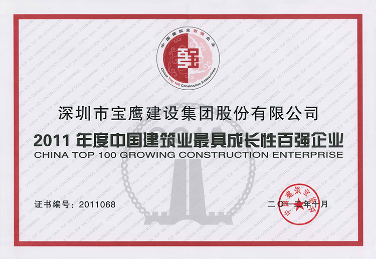 寶鷹集團連續(xù)五年榮獲“中國建筑業(yè)最具成長性企業(yè)”榮譽