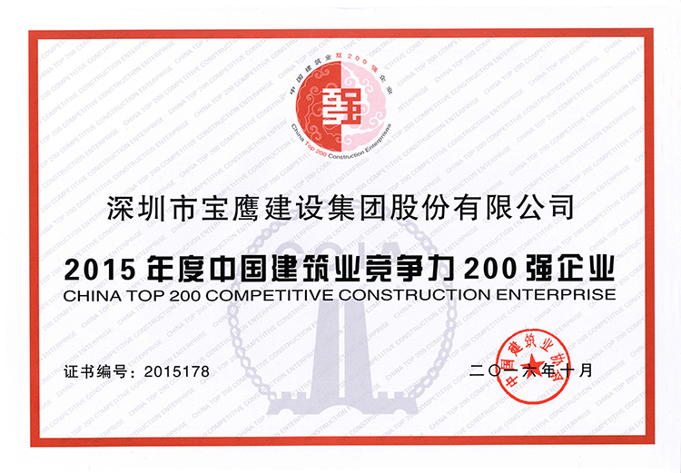 寶鷹集團榮獲2015年度中國建筑業(yè)競爭力200強企業(yè)