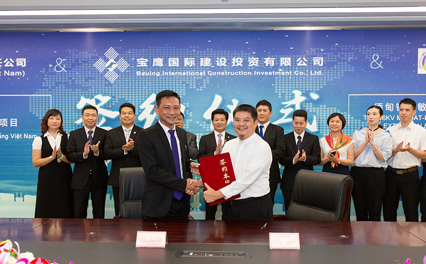 ▲寶鷹集團(tuán)與四川華西(越南)有限責(zé)任公司、緬甸AMM公司簽署海外工程合同