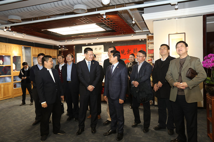 ▲廣東外語外貿(mào)大學(xué)校長仲偉合一行參觀寶鷹美術(shù)館