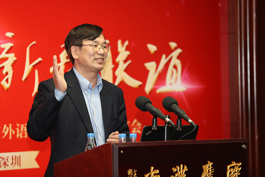 ▲廣東外語外貿(mào)大學(xué)副校長何傳添做主題演講