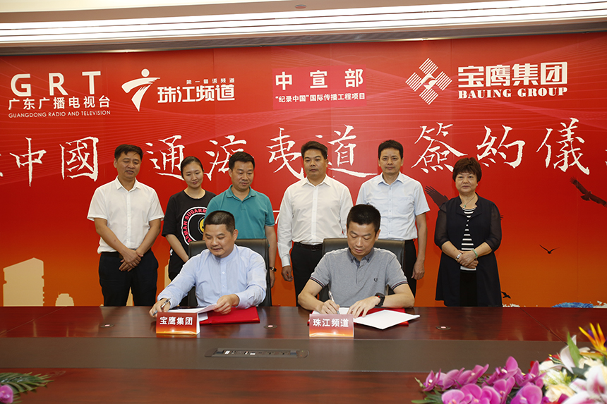根據(jù)雙方合作協(xié)議,寶鷹集團(tuán)將在越南、緬甸、印尼等海上絲綢之路上沿線國家為本紀(jì)錄片的攝制提供支持和保障。廣東廣播電視臺(tái)珠江頻道負(fù)責(zé)人倪卓宏、寶鷹集團(tuán)副總裁古樸代表雙方簽訂了聯(lián)合制作協(xié)議。這也是雙方自2015年聯(lián)合舉辦“寶鷹杯國際書畫印創(chuàng)作大賽”、2016年合作“印尼寶鷹中國書畫邀請展”后的第三次攜手。