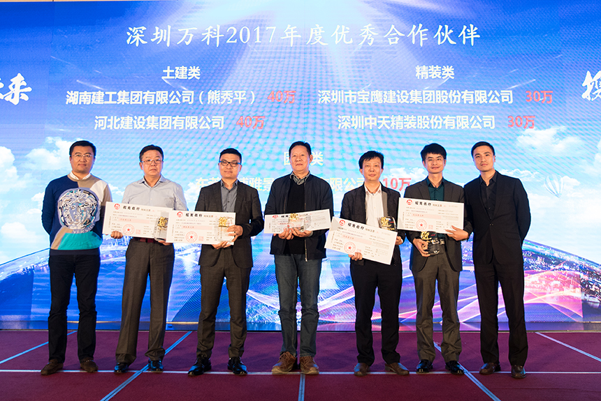 ▲寶鷹集團(tuán)榮獲深圳萬科“2017年度優(yōu)秀合作伙伴”榮譽(yù)稱號(hào)(精裝類)