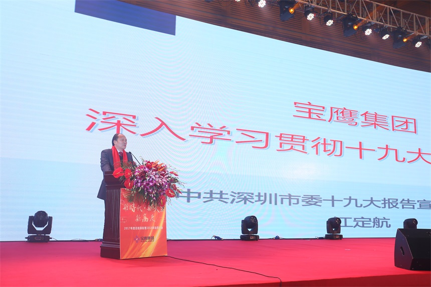 ▲寶鷹集團總裁成湘文作寶鷹集團2017年年度工作報告,并全面部署2018年的工作