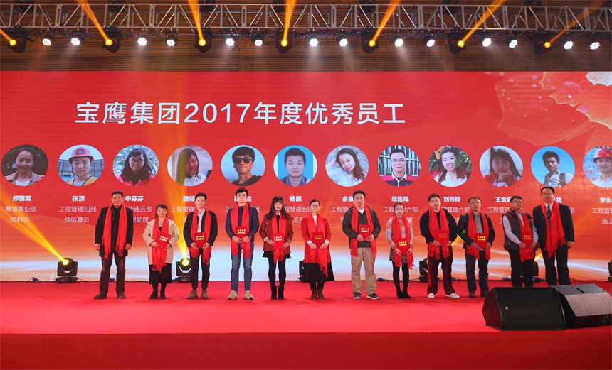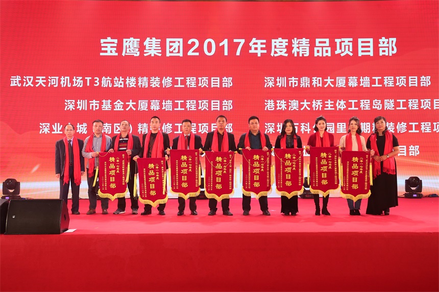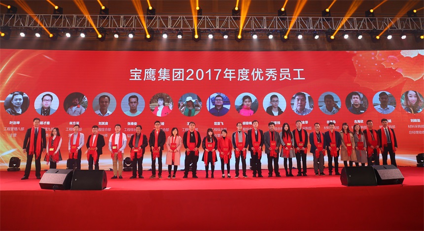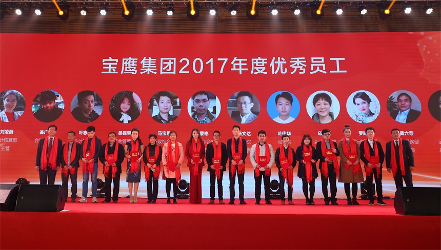 2月23日,寶鷹集團“新時代、新天空、新高度 ”2017年總結表彰大會暨2018年動員大會在深圳會展中心5號館隆重舉行。本屆大會集中體現(xiàn)學習貫徹十九大精神、弘揚工匠精神、傳承中國優(yōu)秀傳統(tǒng)文化三大主題,來自證券、建筑、銀行、媒體各界1500余人齊聚一堂,見證寶鷹集團一年來的成長與蛻變。