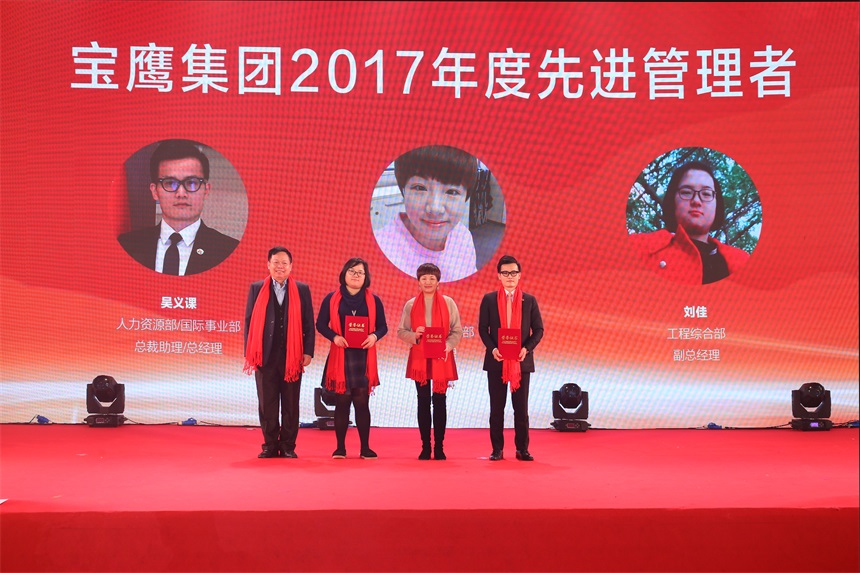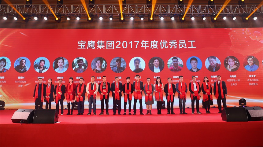 反映平凡崗位上寶鷹人堅守精神的短片《你好,寶鷹人》在大會上播出,引發(fā)了現(xiàn)場觀眾的共鳴和思考。隨后,大會進入工作表彰環(huán)節(jié),寶鷹集團監(jiān)事會主席胡蘭萍依次宣讀了寶鷹集團2017年總結表彰名單。