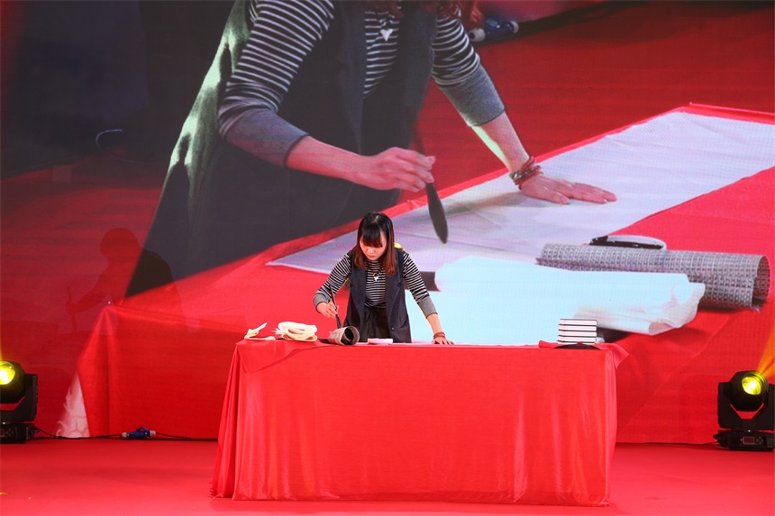 字帖簽發(fā)儀式上,王躍慶館長及古樸副總裁還專門邀請了集團默默無聞卻忠于崗位的保安、保潔員等基層員工代表登臺,向他們贈送《王躍慶楷書千字文》,以表彰其奉獻精神。