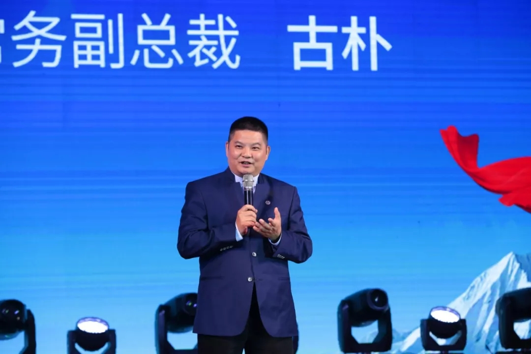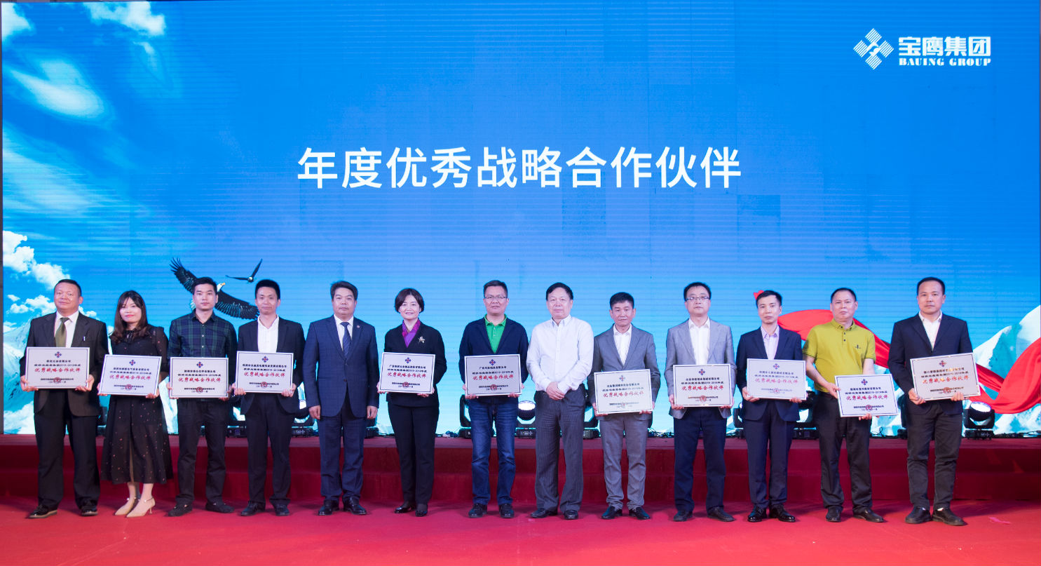 ▲寶鷹股份董事長古少波、寶鷹集團總裁成湘文為年度優(yōu)秀戰(zhàn)略合作伙伴頒獎