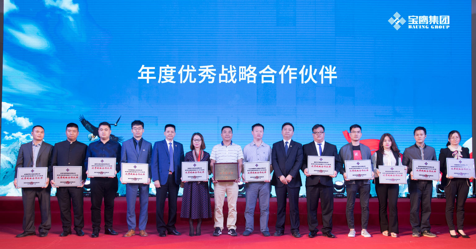 ▲寶鷹集團執(zhí)行總裁于泳波、寶鷹股份監(jiān)事會主席余少潛為年度優(yōu)秀戰(zhàn)略合作伙伴頒獎