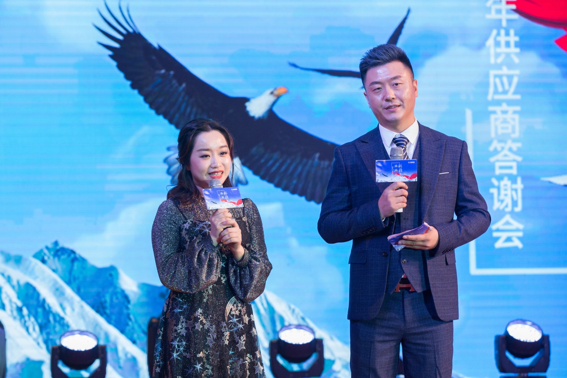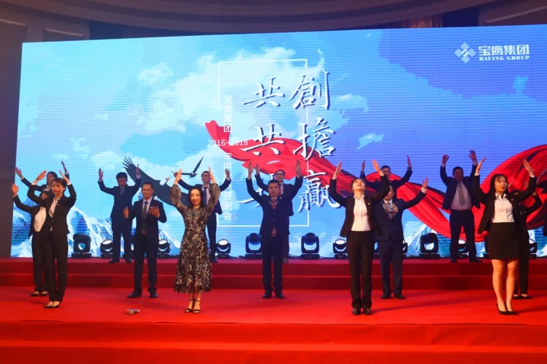 寶鷹集團各領(lǐng)導(dǎo)與優(yōu)秀供應(yīng)商代表共聚一堂,共話未來合作與發(fā)展。圍繞“共創(chuàng)、共擔(dān)、共贏”主題,由寶鷹集團員工自創(chuàng)自導(dǎo)自演的答謝晚會隨即精彩上演。