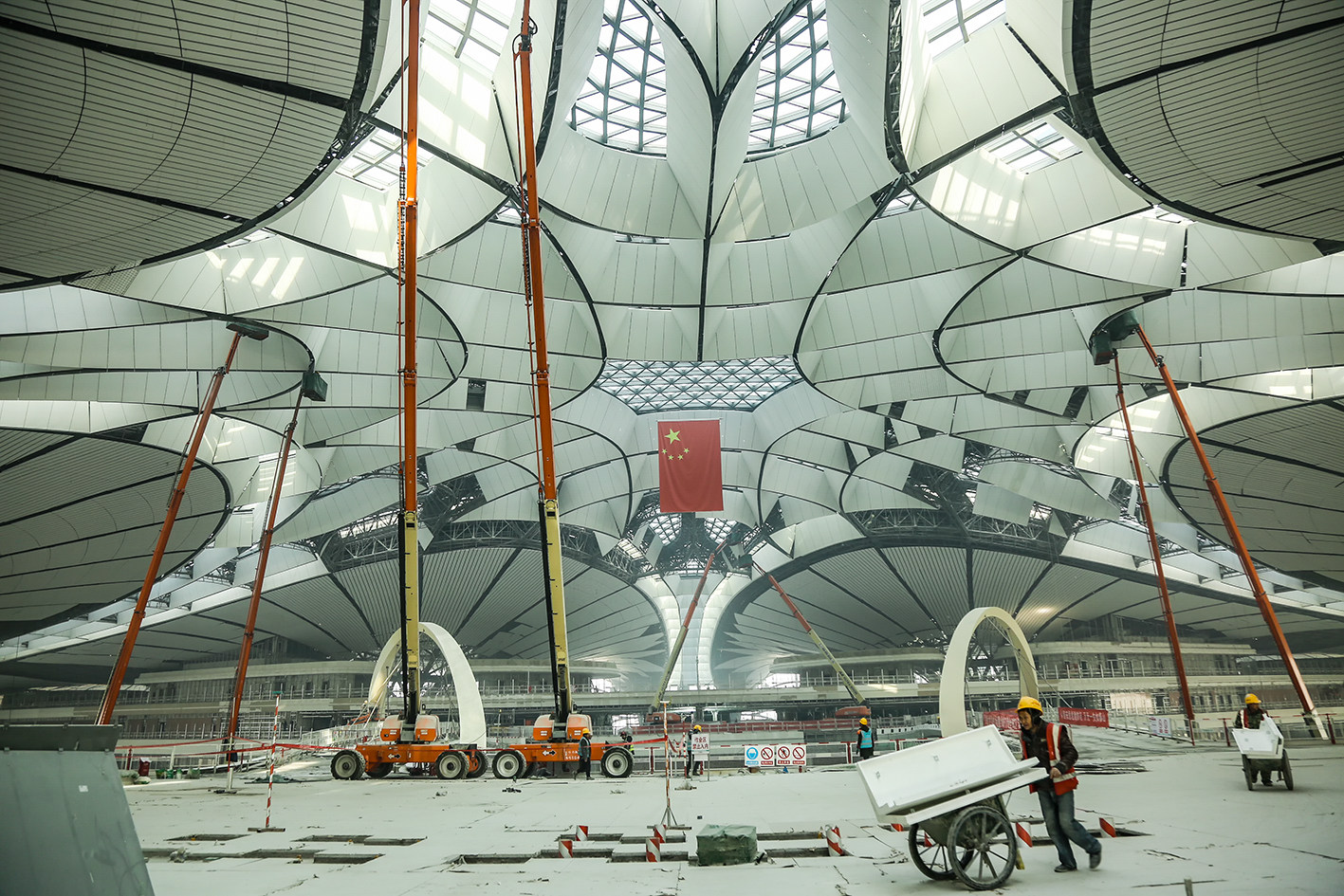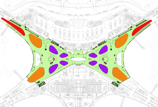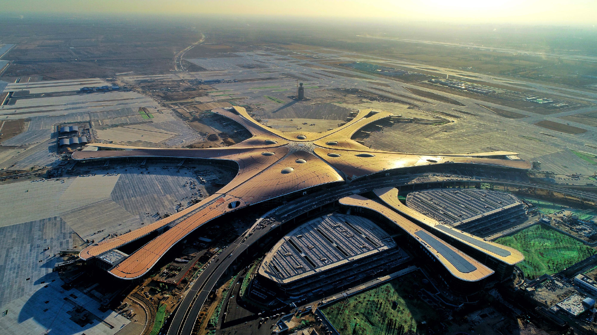北京大興國際機場被稱為世界最大機場,是國家重點工程項目??傉嫉孛娣e4.1萬畝,航站樓面積達18萬平方米,總投資約800億元,是中國規(guī)模最大空地一體化交通樞紐,集高鐵、城際、地鐵于一體,服務北京、天津、廊坊、保定、衡水與雄安新區(qū)。由法國ADP Ingenierie 建筑事務所聯(lián)手扎哈·哈迪德建筑事務所共同完成的概念設計——只有一個航站樓,以單點為中心,延伸出五條指廊,整個航站樓呈輻射狀構型。