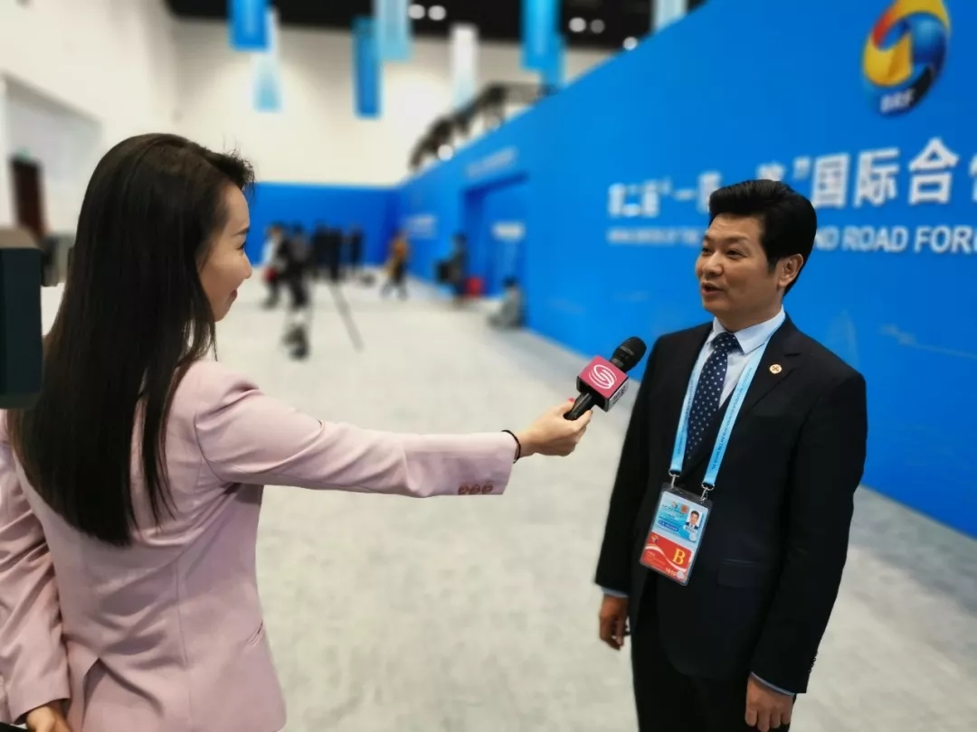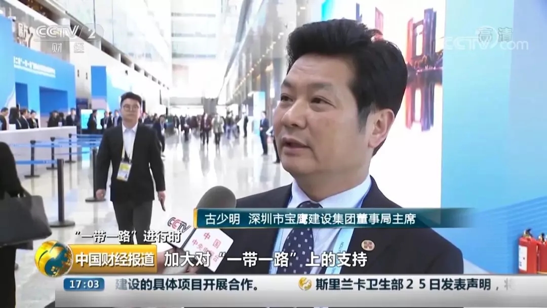 開幕式后,中央廣播電視總臺、經(jīng)濟日報、廣東廣播電視臺、深圳衛(wèi)視等就“一帶一路”高質(zhì)量發(fā)展、“一帶一路”與“粵港澳大灣區(qū)”等話題采訪寶鷹集團董事局主席古少明。